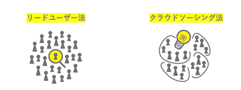 企業がユーザー・イノベーションを活用する方法は大きく分けて2つあります。1つがリードユーザー法、と呼ばれるものです。もう1つは、クラウドソーシング法というものです。それぞれについて、以下概要を説明します。
