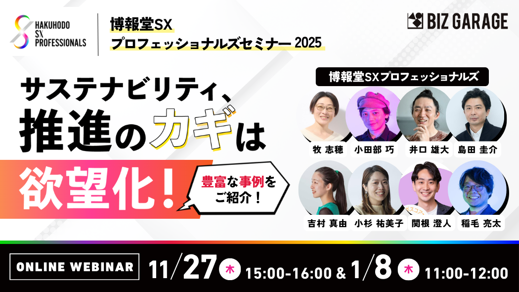 本セミナーでは、この課題を解決するため、サステナビリティを「生活者の欲求を刺激する価値」に転換するアプローチを提案します。 環境問題や社会課題への貢献を、単なる「正しさ」ではなく、「美味しい」「愛着が湧く」「観てみたい・やってみたい!」といった人間の根源的な“欲望”に結びつけることで、生活者を能動的に巻き込み、ビジネス成長につなげた成功事例を多数ご紹介します。